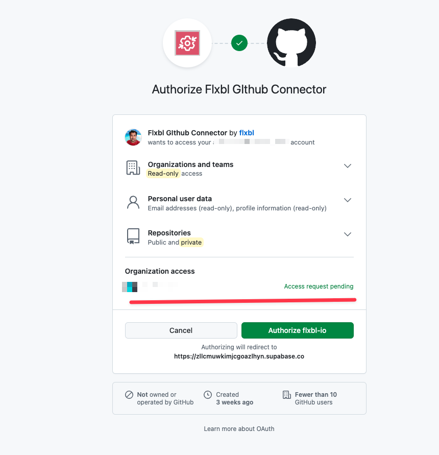 Please note your GitHub Admin has to authorize Flxbl's GitHub Connector App for authentication to work