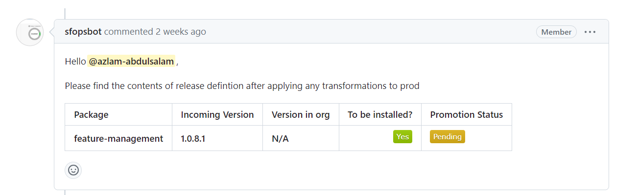 This workflow then proceeds to fetch all the environments that are marked with "**type:release"** and proceeds to execute a dry run of the command in parallel across all release environments. The output of the dry run will be available as a comment in the Github issue created. The team could have a final check on the deployment plan that will be executed by sfops before proceeding for the actual execution.