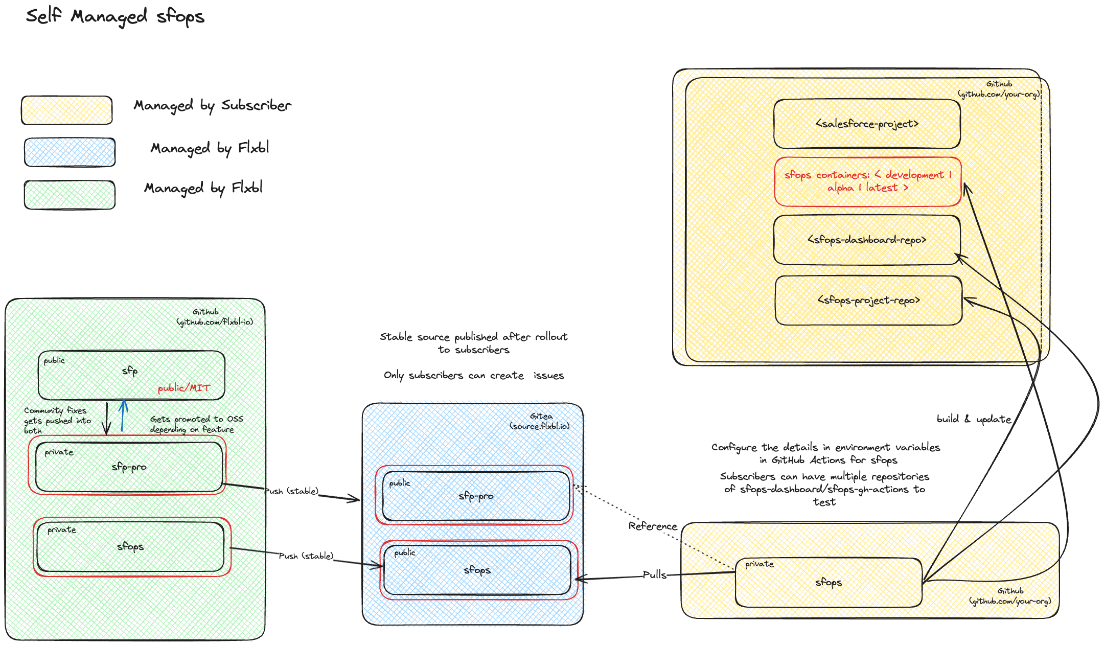 The below diagram describes how updates are rolled out to a customer's GitHub org when a customer prefers a self managed instance