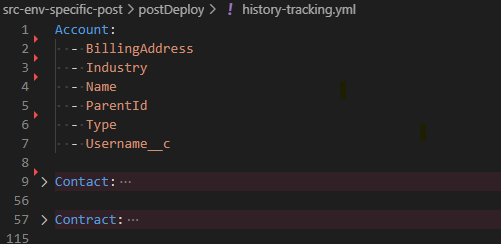 In this way, the deployment of field history tracking is completely automated. One now has a declarative way of defining field history tracking (as well as feed tracking) without having to store the metadata in the repo. The only maintenance effort left for developers is to manage the YAML file.